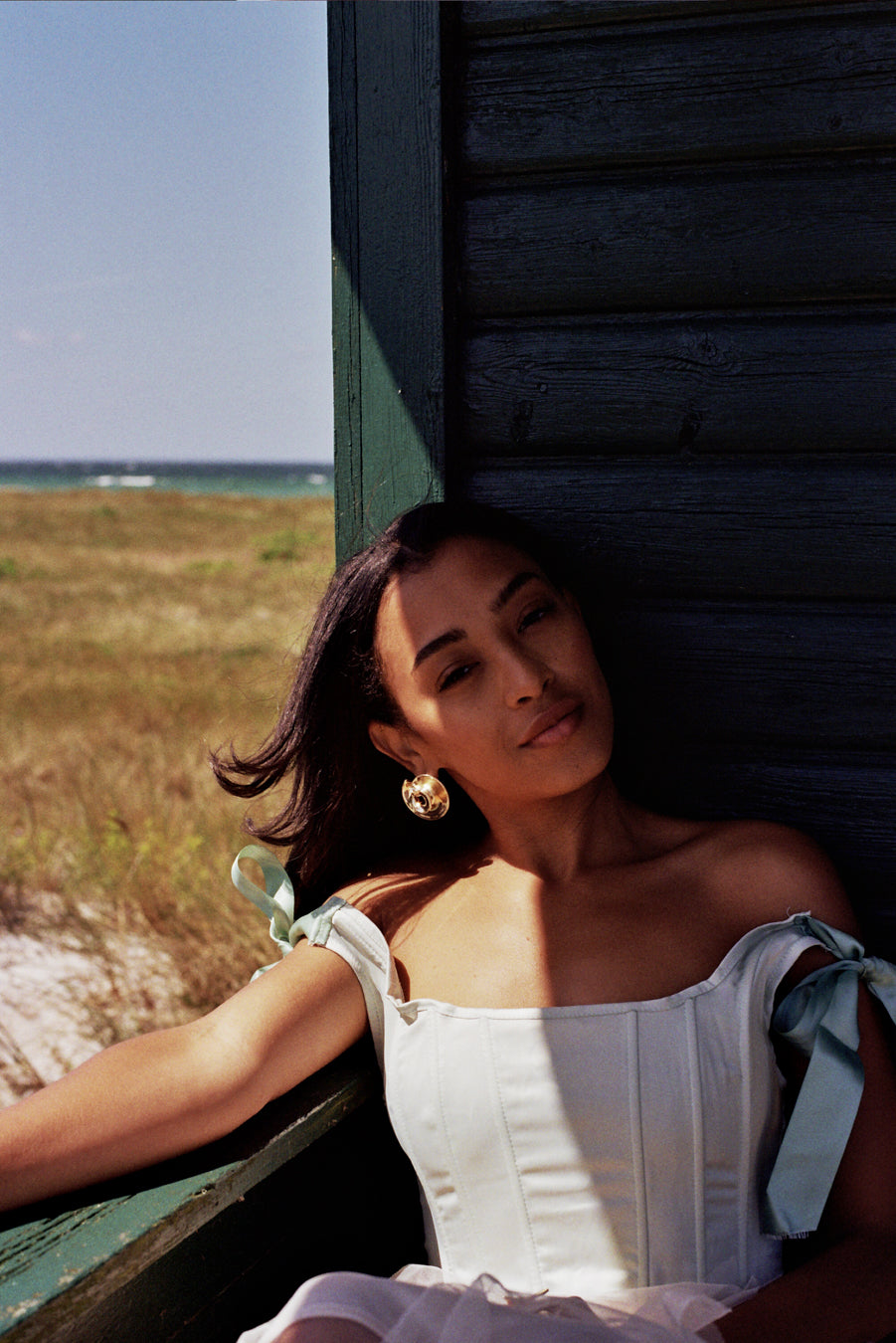 6092 - Satintopp med rosett att knyta bak, öppen rygg