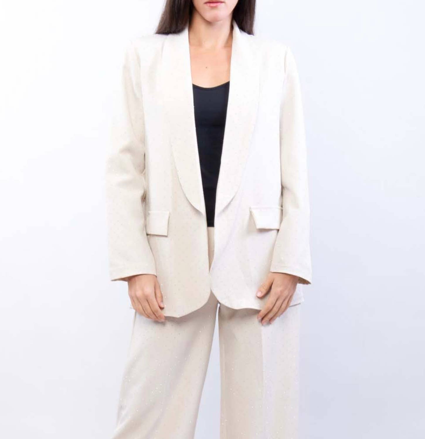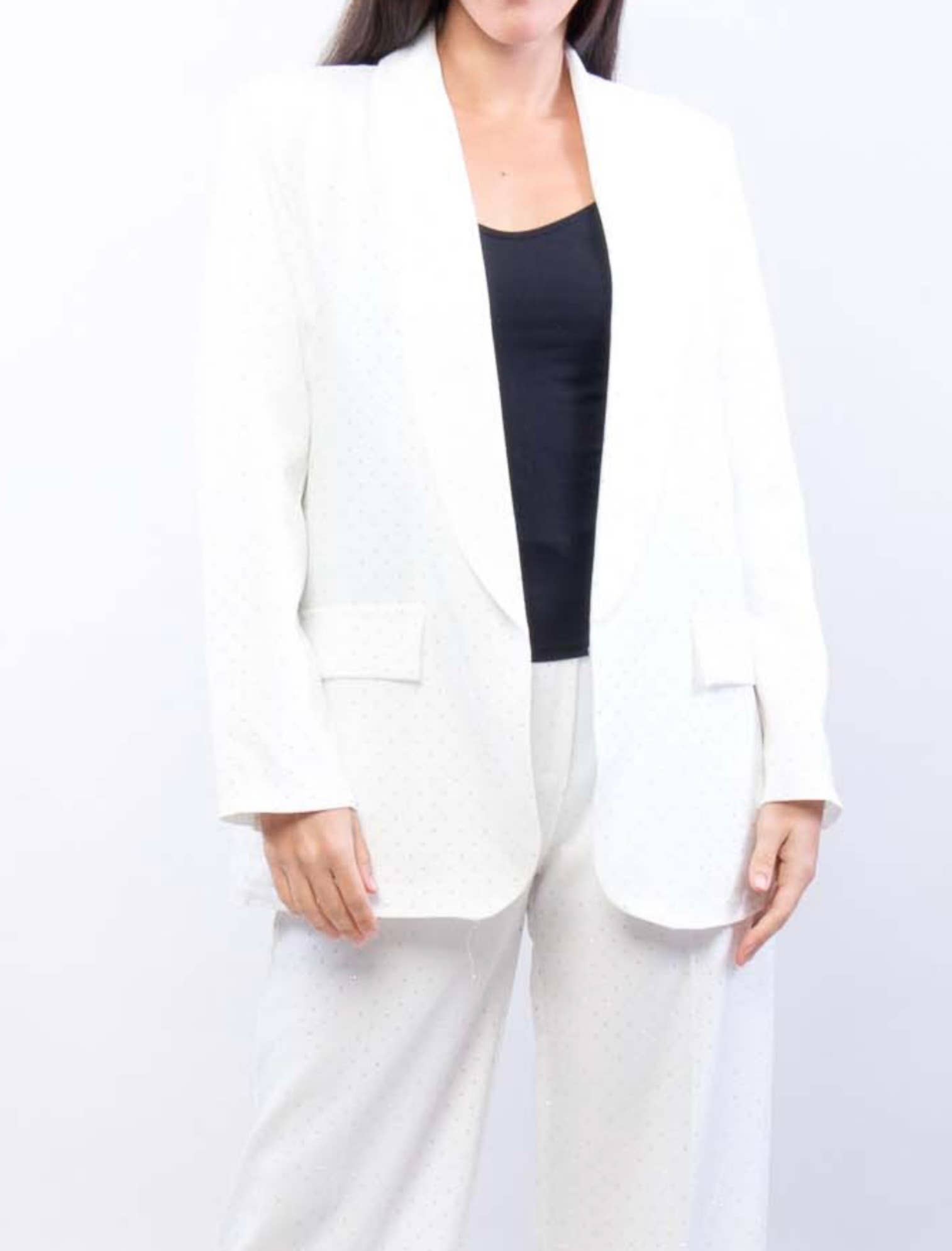 Elegant damkavaj med långa ärmar och två fickor fram med glittrigt tryck