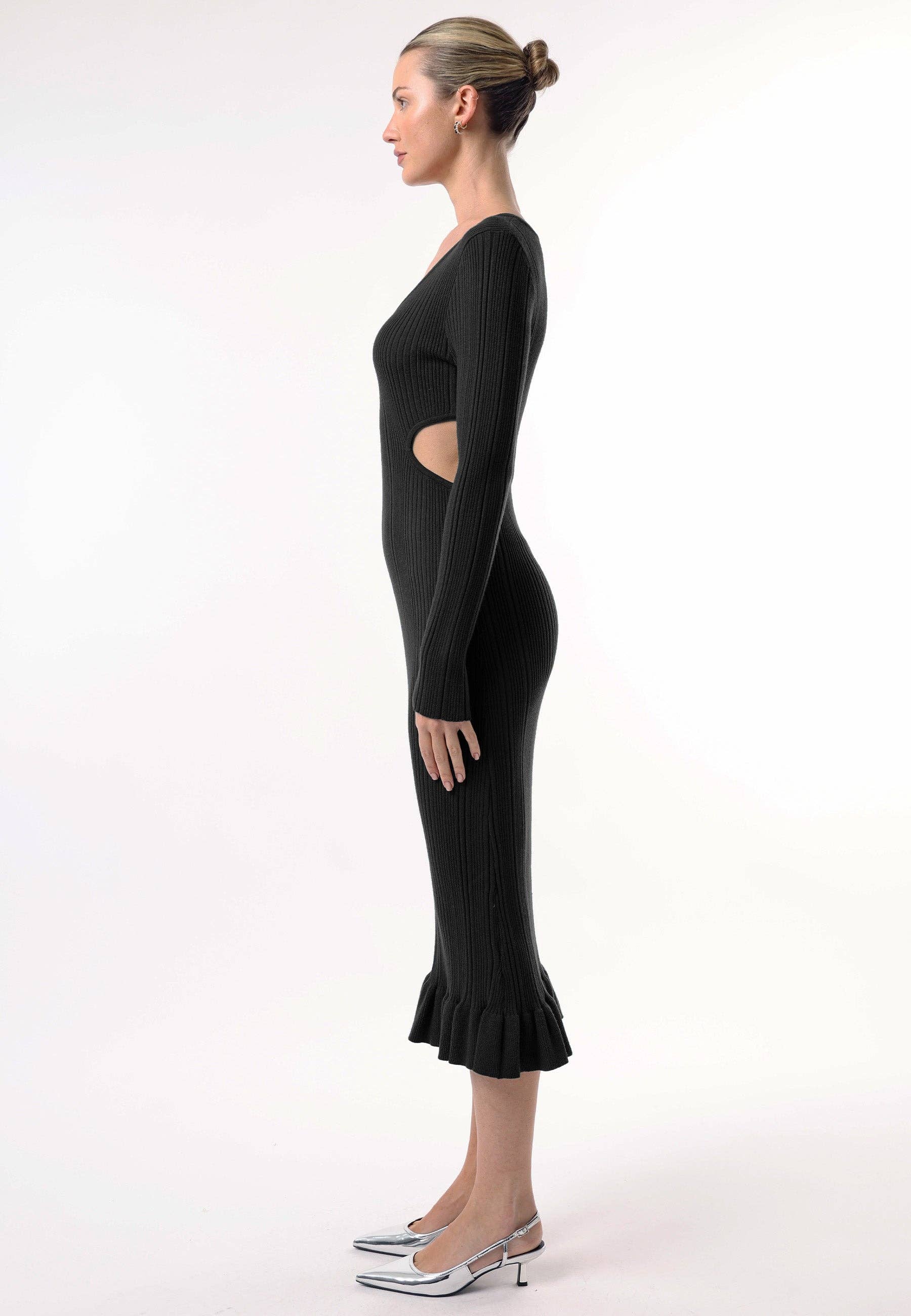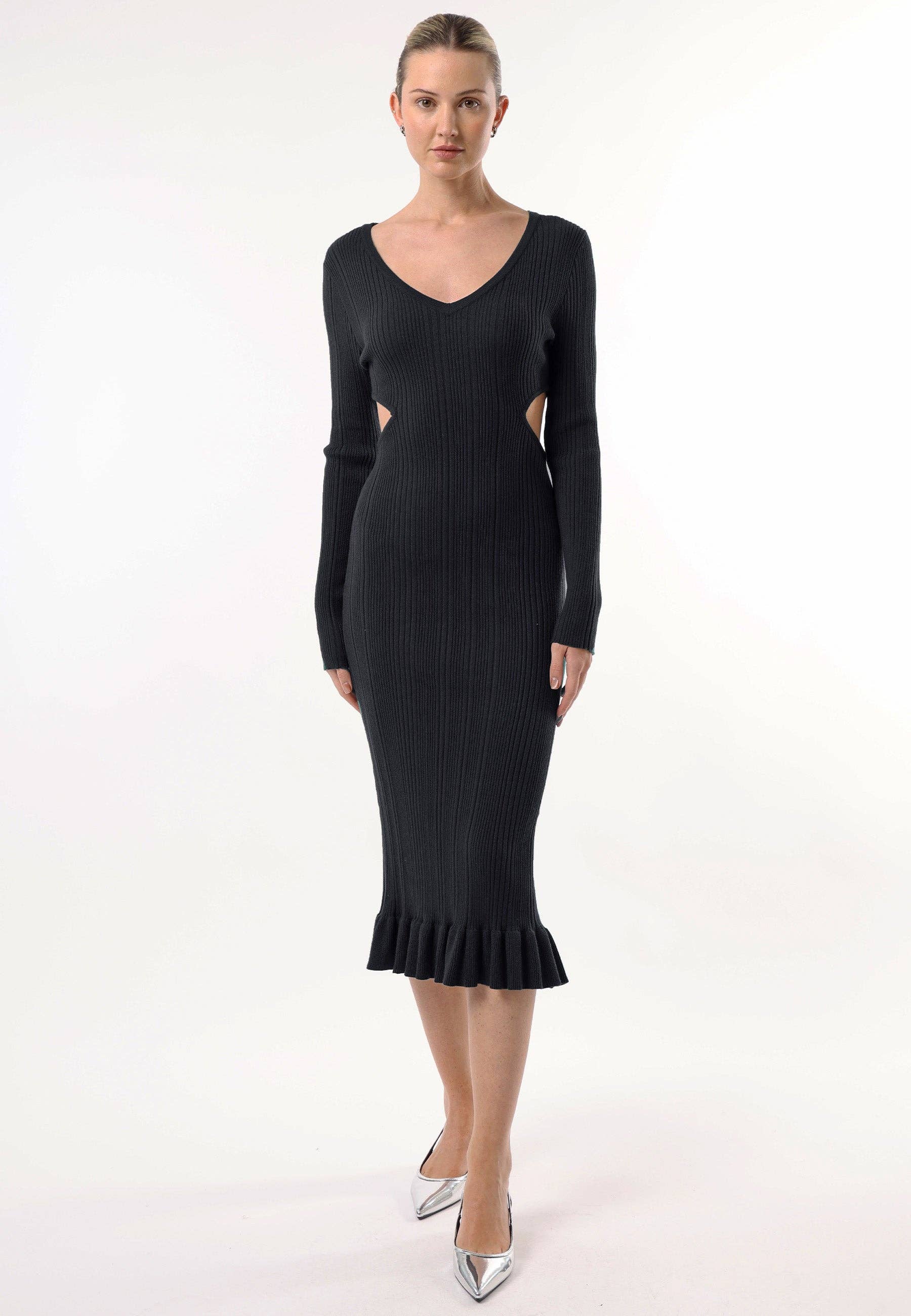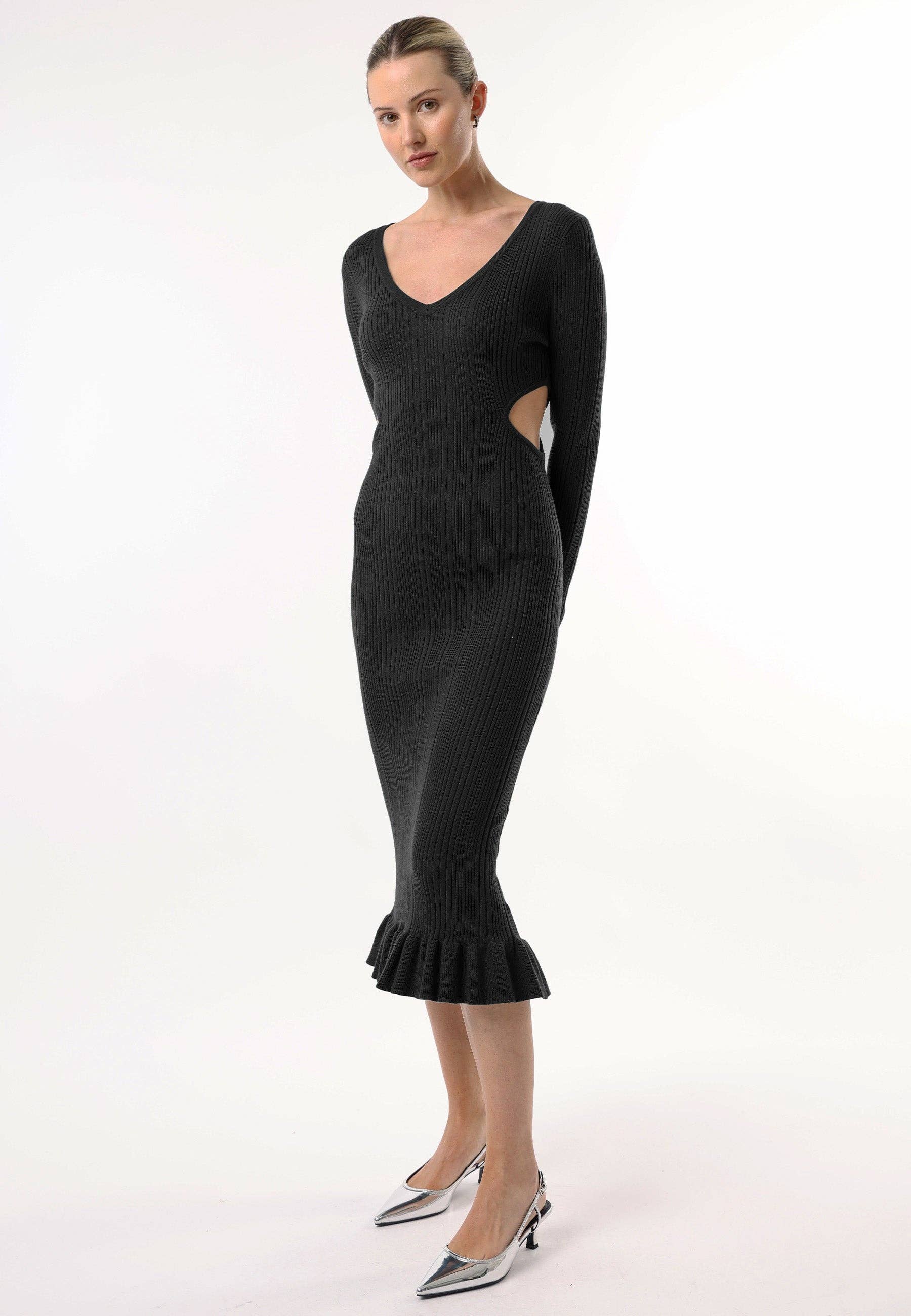 Den långärmade svarta stickade midiklänningen med utklipp från ANGELEYE är en uppfriskande variant av en garderob. En klassisk midiklänningsform, figurkramande och smickrande med bred v-ringning. Utskärningar i sidorna och en volangfåll lyfter denna måste-ha-vardagsstil. Håll dig mysig i den stretchiga stickningen. Klä upp dig för datumkväll eller klä dig ner för jobbet. Långärmad Stickad klänning Figurkramar Volangfåll Sidoskärningar Djup V-ringning Klassisk stil Midilängd Höst Vinter Fritidskläder Cocktails Gå ut, Fest Arbetskläder Garderobshäftklammer Övergångsklänning Smart Casual * Modellen bär UK storlek 8/XS * Modellhöjd är 5 ft 8 * ANGELEYE London-baserad *