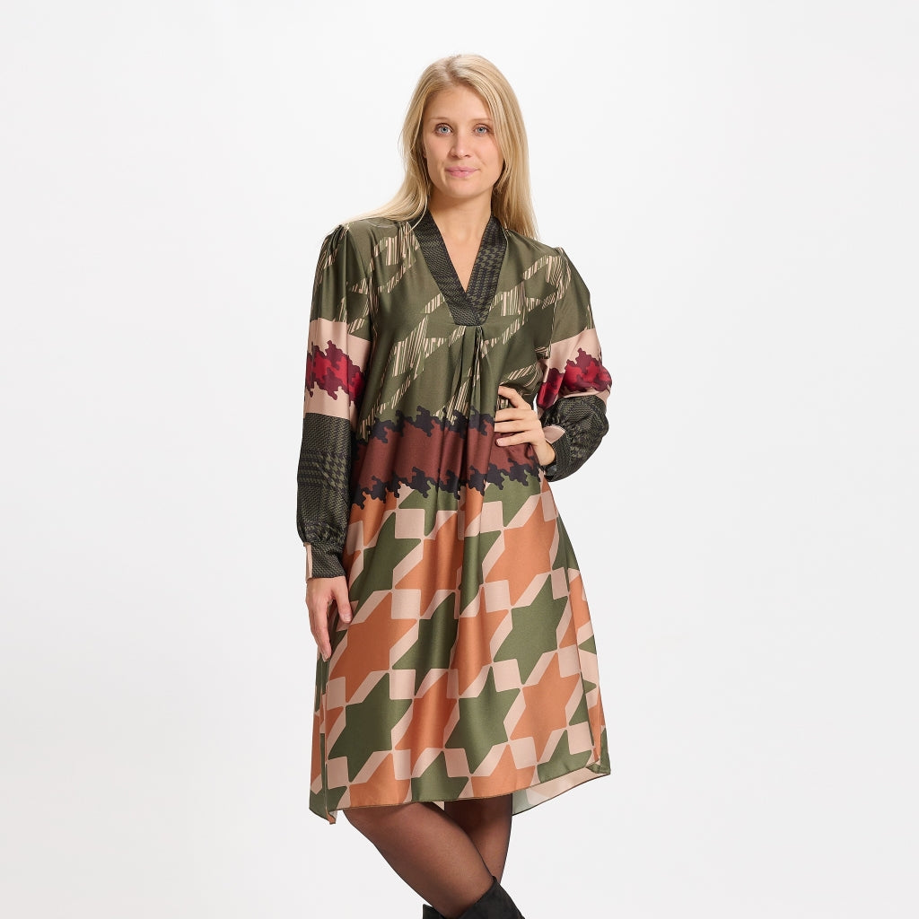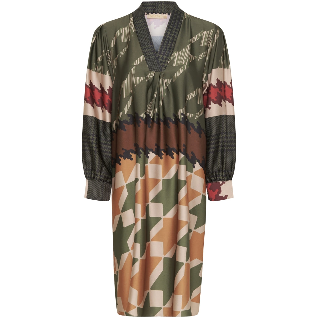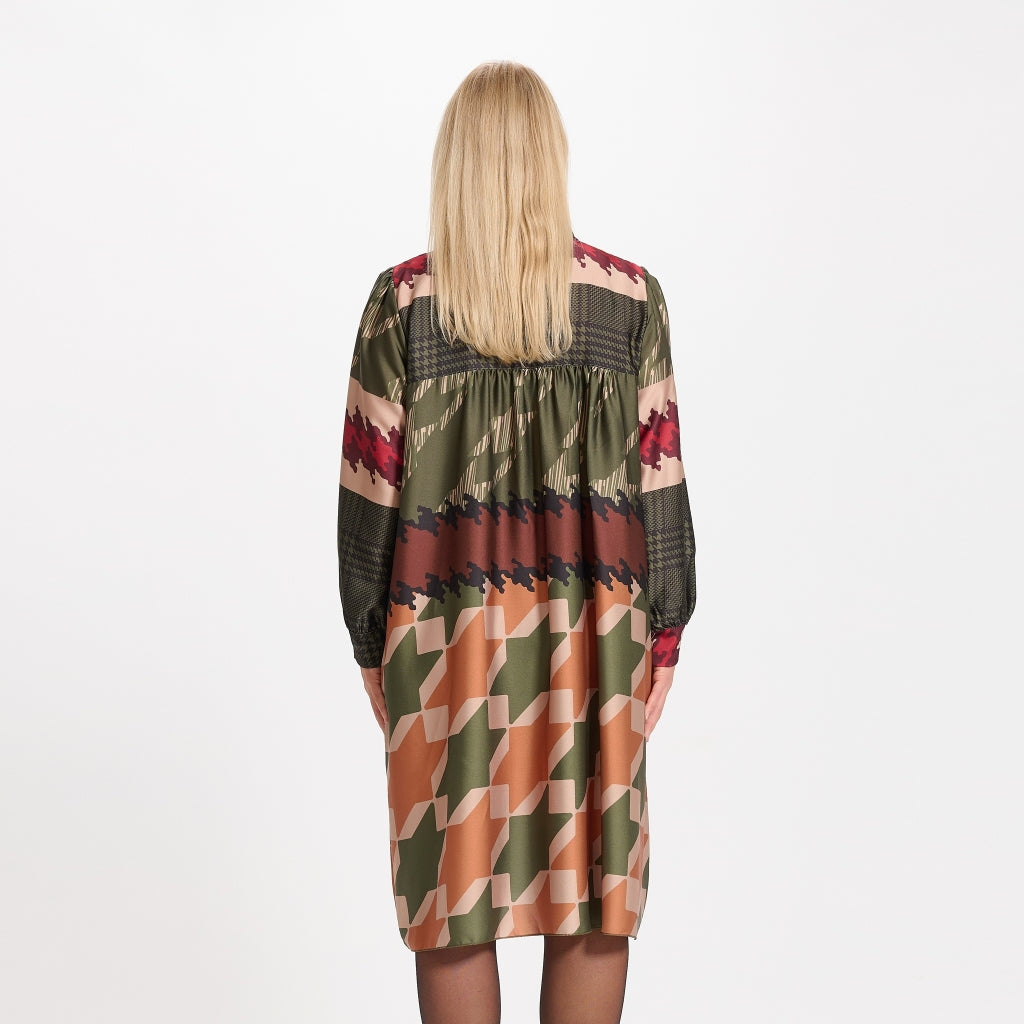 Klänning i unikt mönster. Passar perfekt till ett par strumpbyxor och höga stövlar.