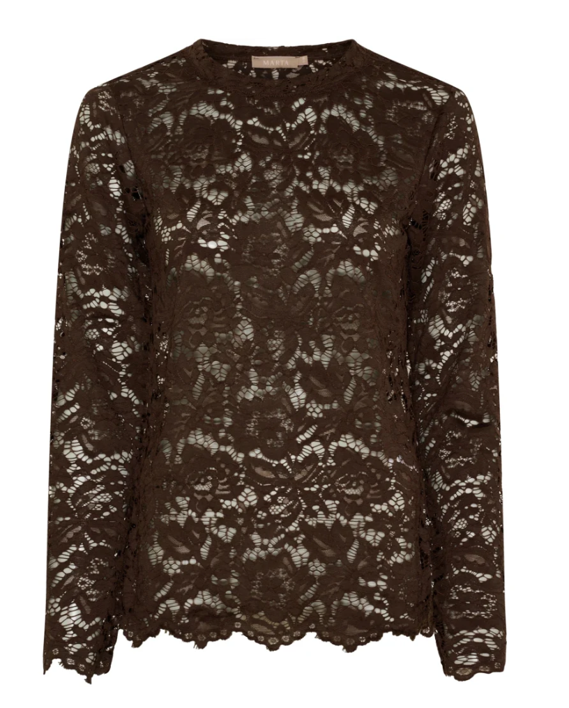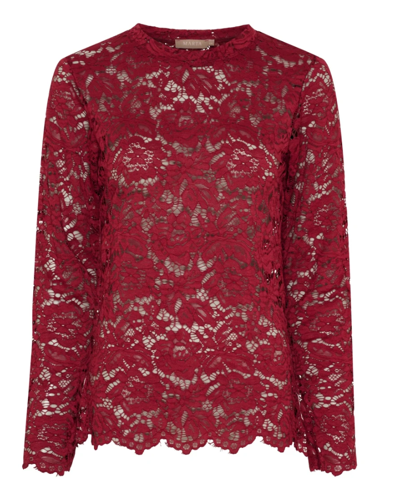 Elegant långärmad spetsblus från Marta du Château. Blusen har långa ärmar och rund hals. Styla den med en kjol eller ett par byxor för en sofistikerad look.