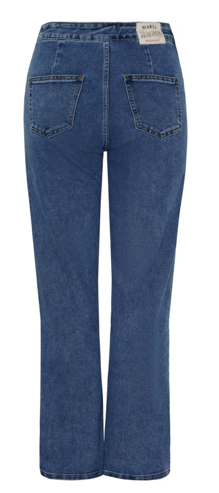 Snygga jeans med vida byxben från Marta. Jeansen har snygga detaljer och är normala i storleken.