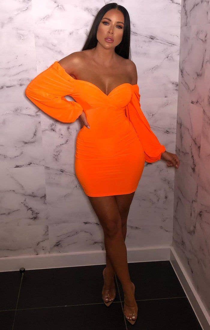 Neon Orange Slinky Ballong Ärm Miniklänning